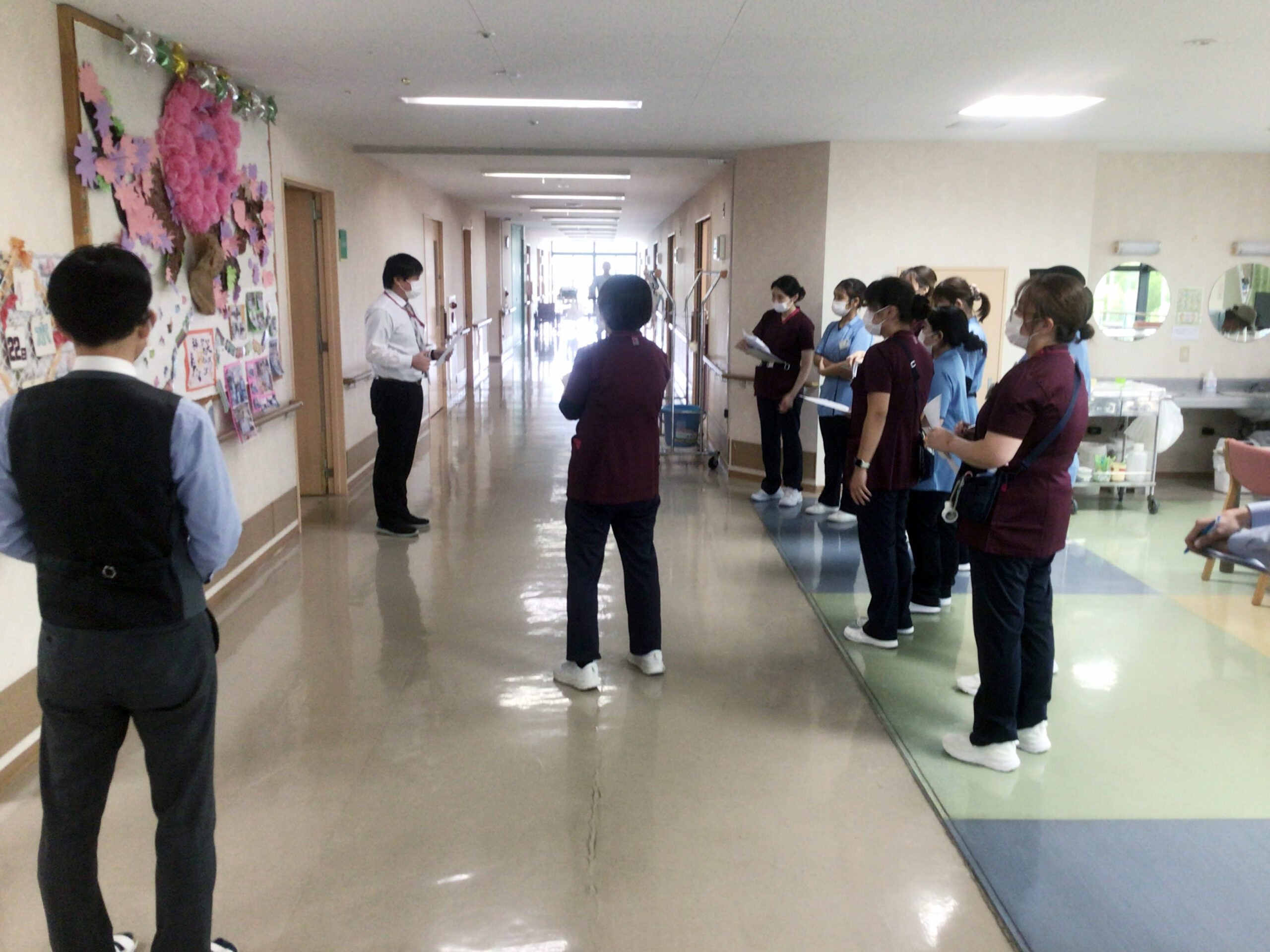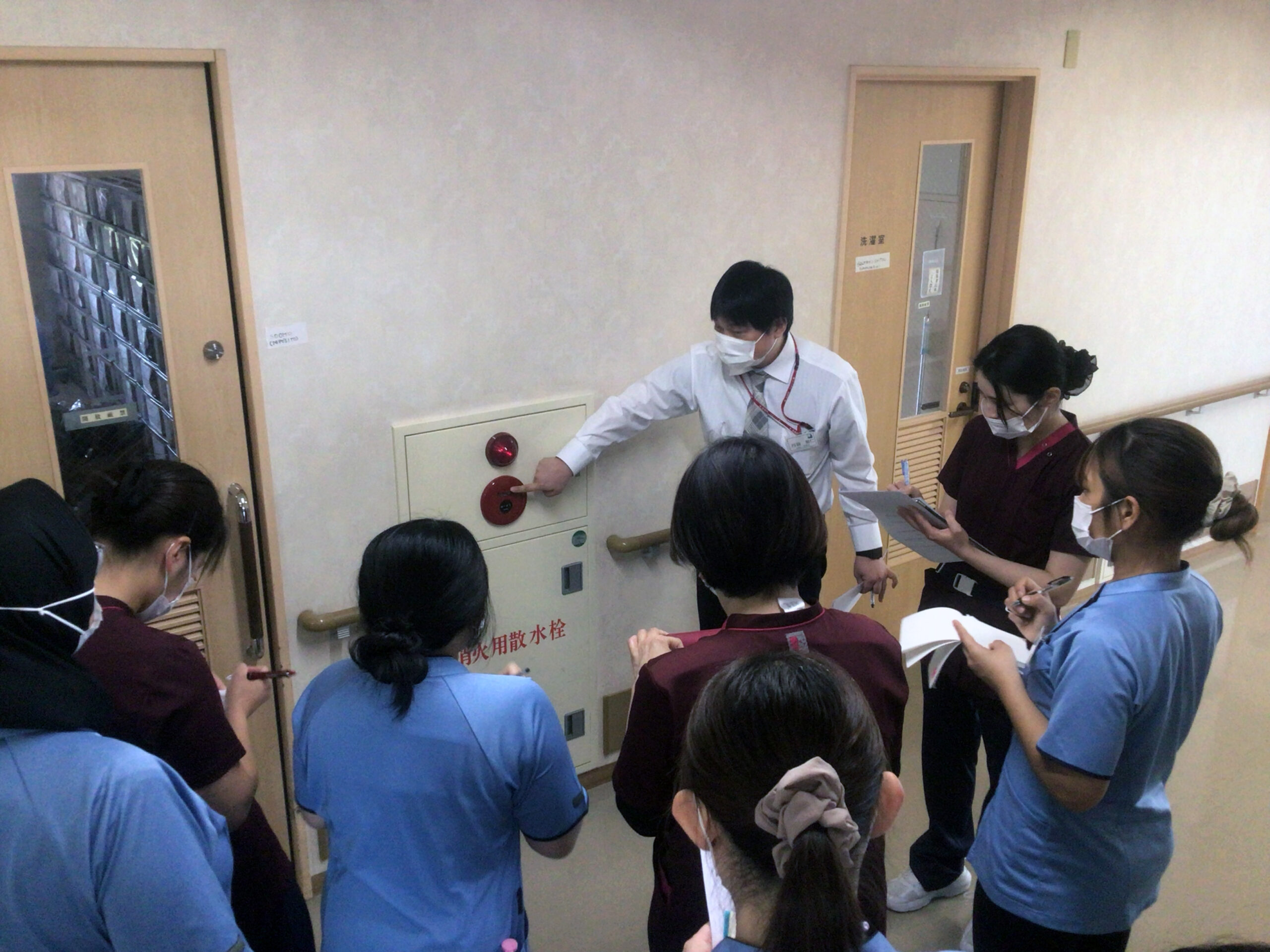 【院内における消防設備の説明の様子】