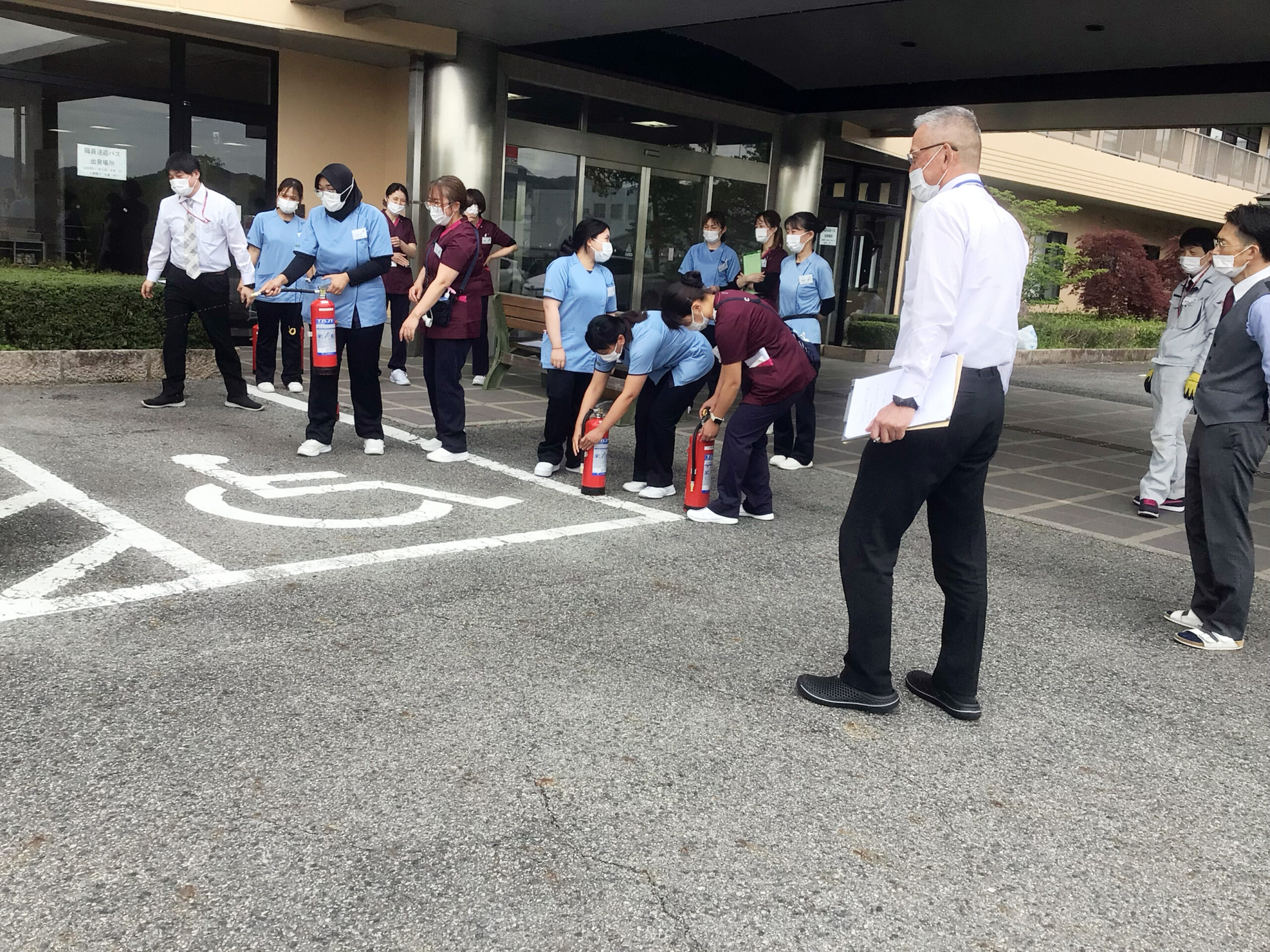 万が一に備え院内で起こり得る火災、防火の知識を新規職員と一緒に深めました。